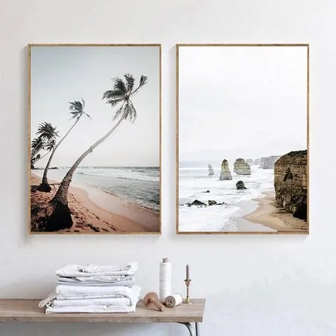 I love creating statements using symmetry as a focal point with bold large prints. Placing two side by side can really help align and shape a space in the room. You can also use lines of smaller frames for a structured gallery look.